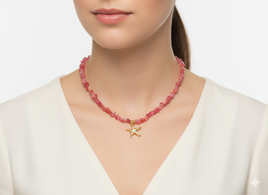 Pink Quartz Necklace with Starfish Pendant – 18K Gold Plated
