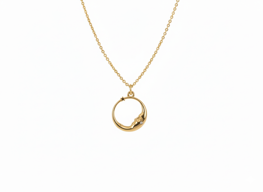 Circle Half Moon & Star Pendant Necklace – 18K Gold Plated