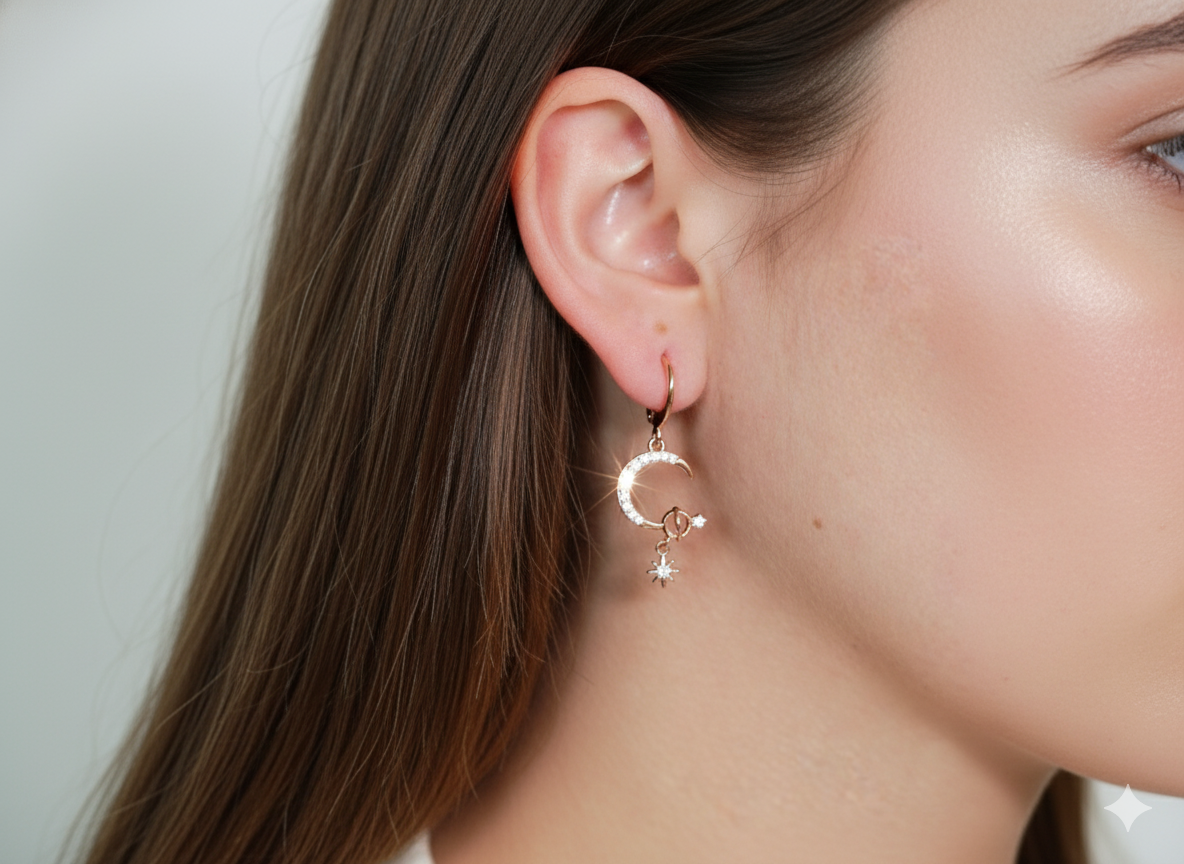Huggies Rose Sterling Silver 925 with Noon and Star Design & Zircon