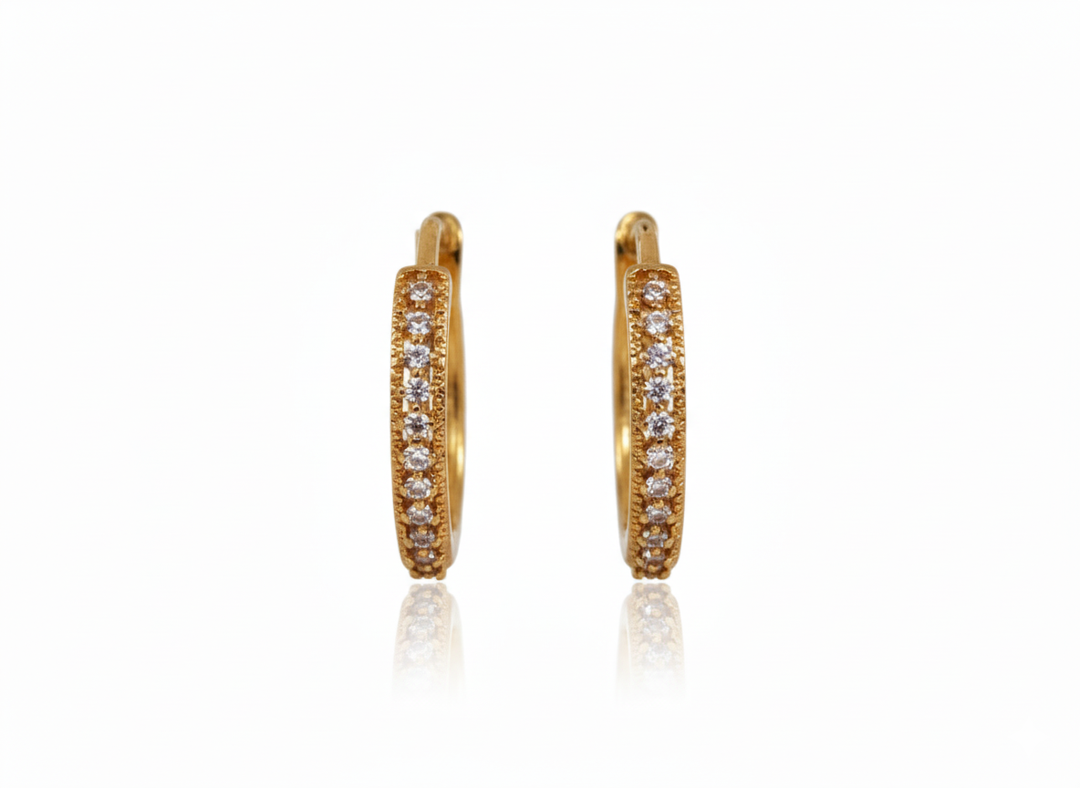- Design: Delicate huggie earrings featuring white zircons and a medium-sized pearl