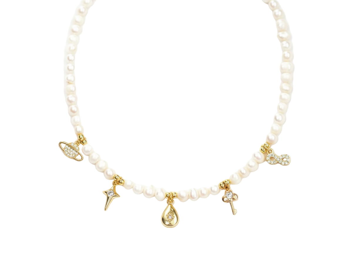 Freshwater Pearl Necklace with Charms