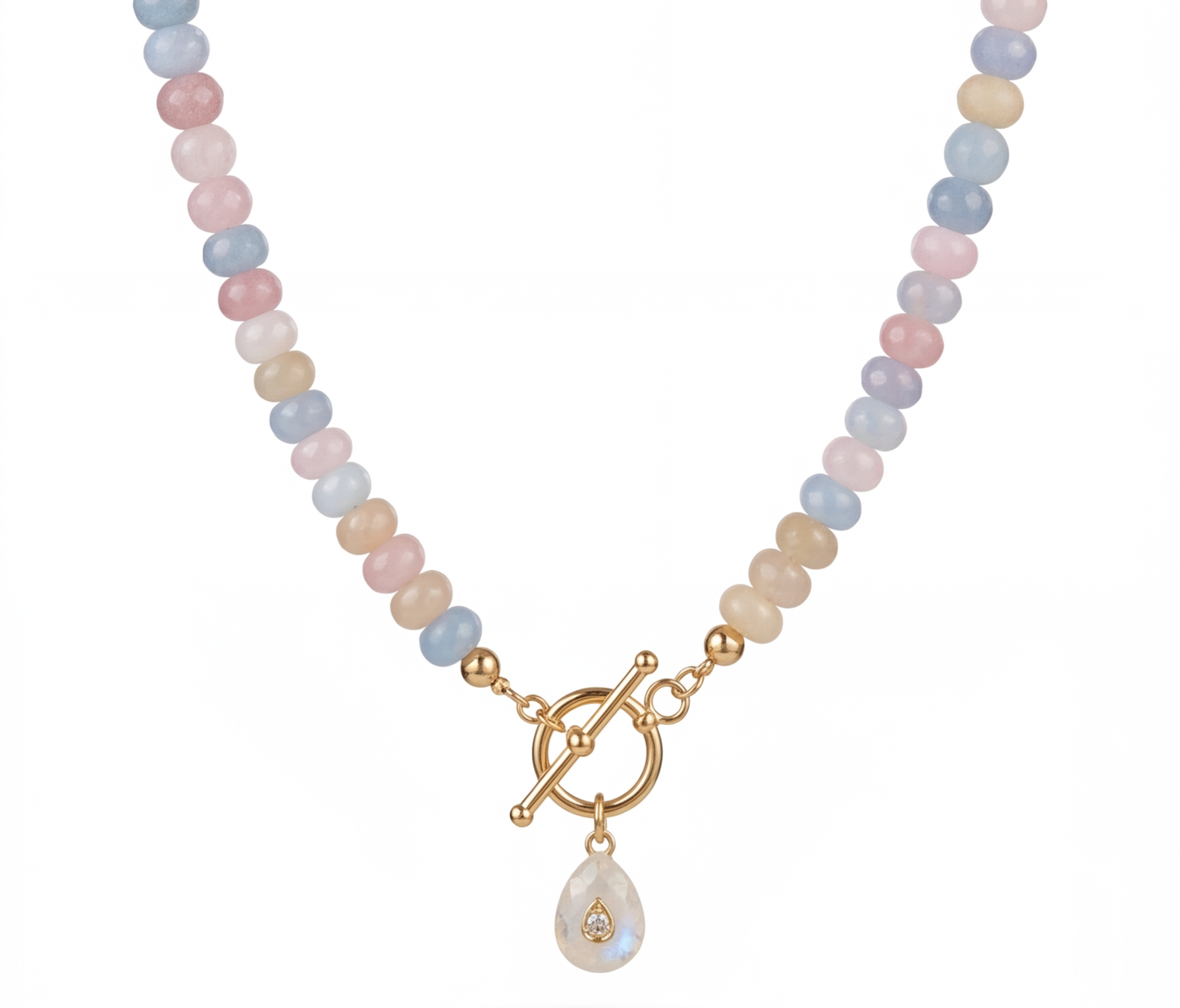 Natural Stone Pendant Necklace – 18K Gold Plated