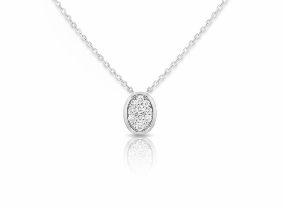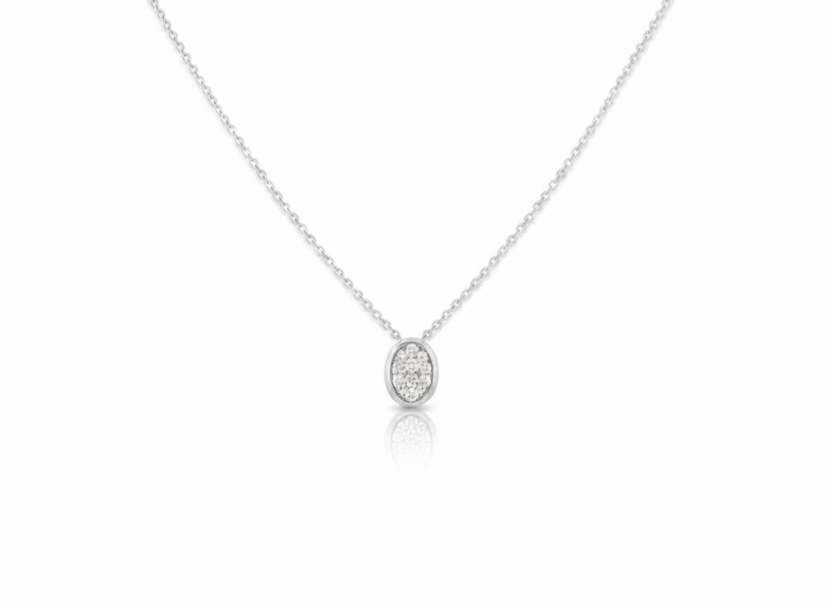 White Oval Necklace in Sterling Silver 925