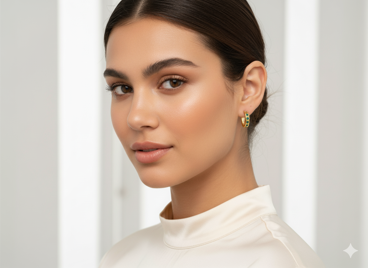 - Design: Hoop earrings with vibrant green zirconia for a bold and elegant look