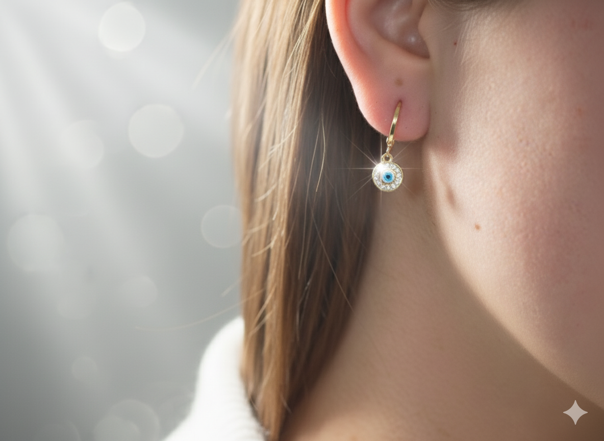 - Design: Circle-shaped huggie earrings with blue evil eye and zirconia for a trendy and protective touch