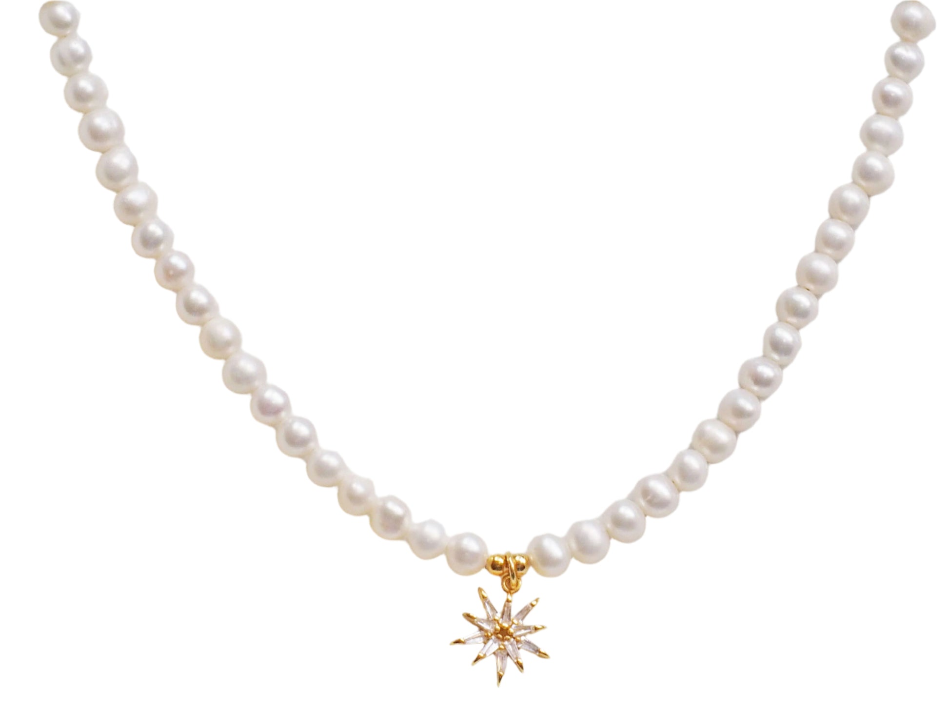 Order this elegant necklace today and shine with the beauty of natural pearls and the charm of a star pendant.