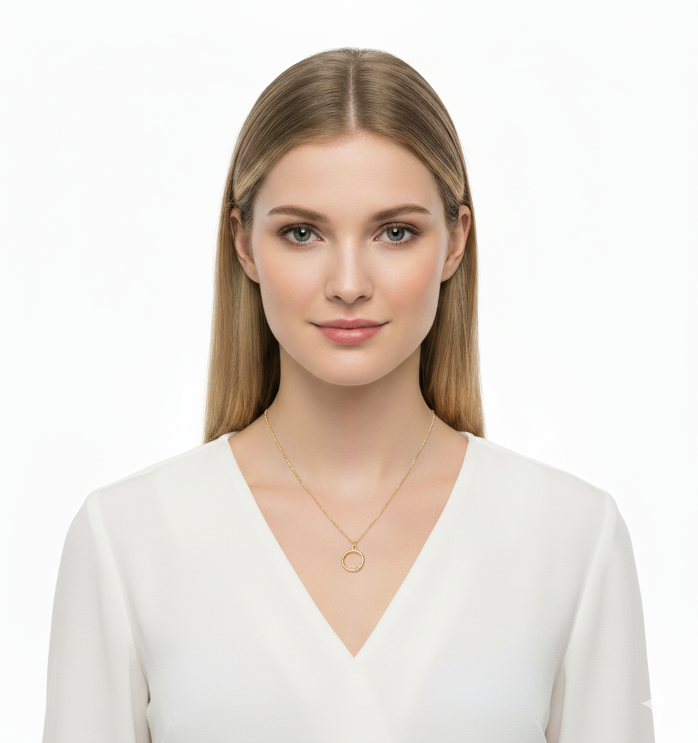 Circle with Zircon Necklace – 22K Gold-Plated Pendant with Zircon
